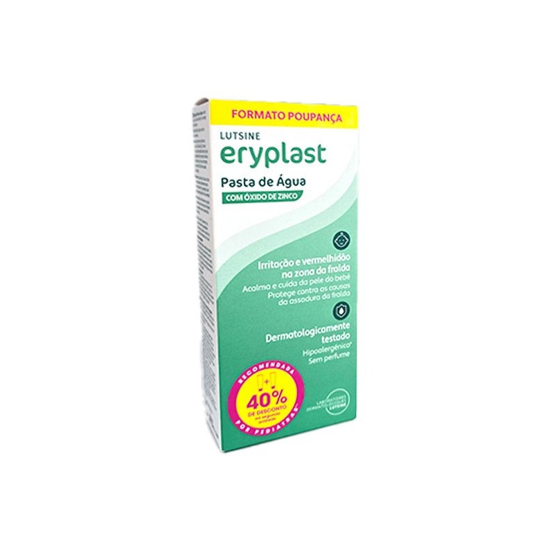 La pasta al agua eryplast actúa contra las principales causas de la dermatitis del pañal: acción de apósito protector: a base de óxido y polvos absorbentes, su fórmula en pasta a base de agua forma una barrera protectora que aísla los glúteos de las heces y la orina irritante y los resiste toda la noche. También limita la fricción del pañal.