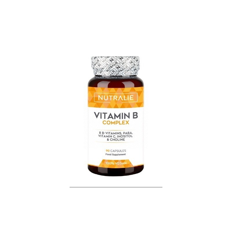Vitamin B Complex de Nutralie se presenta en un envase que contiene 90 cápsulas.
