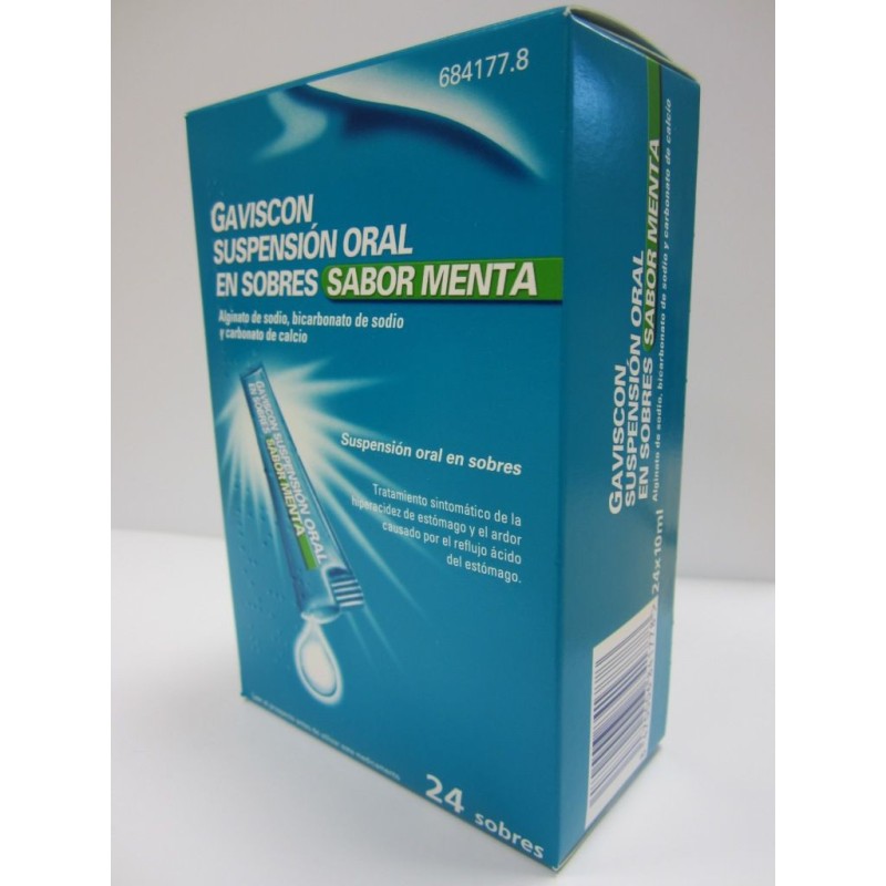 Alivia el ardor y la acidez con Gaviscon suspensión oral en sobres sabor menta, rápido, cómodo y eficaz para aliviar los síntomas de acidez y malestar estomacal.