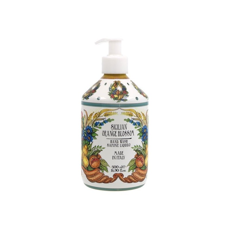 La esencia floral del jabón de manos flor de naranja siciliana de 500 ml envuelve tus manos con una sensación refrescante y un delicado aroma cítrico, mientras garantiza un efectivo lavado.