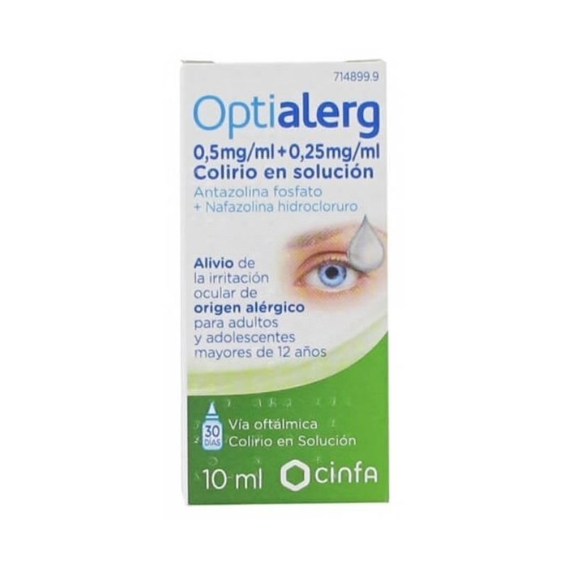 Optialerg 5 mg/ml + 0,25 mg/ml Colirio En Solución 10ml para el alivio temporal de la irritación, enrojecimiento y congestión ocular leve de origen alérgico para adultos y adolescentes mayores de 12 años.