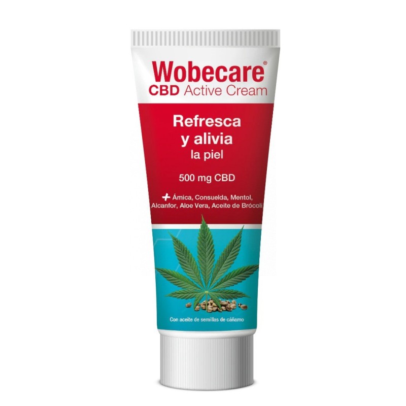 Wobecare® CBD Active Cream es una crema con una combinación única de ingredientes herbales (árnica, mentol, alcanfor, gaulteria, consuelda, aloe vera y aceite de brócoli) y un alto contenido de CBD (500 mg por tubo) para un efecto calmante instantáneo y una sensación refrescante, brindando bienestar y alivio en la piel.