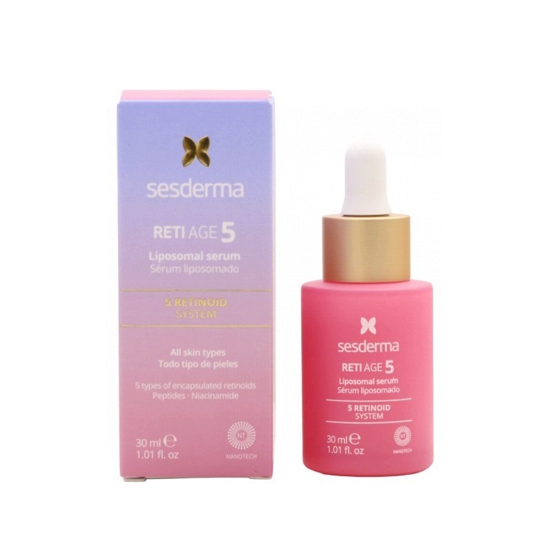 Sederma reti age 5 liposomal serum es un sérum antienvejecimiento diseñado para abordar de manera eficaz los signos del envejecimiento cutáneo. Está especialmente formulado para combatir líneas de expresión, arrugas profundas, pérdida de firmeza, elasticidad y otros efectos del paso del tiempo en la piel. Gracias a su innovadora composición basada en tecnología de encapsulación liposomal, actúa directamente en las capas profundas de la piel para garantizar resultados visibles y duraderos. Este sérum es ideal para todo tipo de pieles, ofreciendo una combinación única de ingredientes activos que trabajan en sinergia para reparar, hidratar y renovar la piel. ¿para qué sirve sesderma reti age 5? el reti age 5 liposomal serum ha sido desarrollado para cumplir múltiples funciones dentro del cuidado facial antienvejecimiento: reducir arrugas: su fórmula con cinco tipos de retinoides encapsulados en liposomas actúa directamente sobre las arrugas profundas y líneas de expresión. Renovar la piel: gracias a sus propiedades regeneradoras, estimula la producción de colágeno y elastina, esenciales para recuperar la firmeza y elasticidad de la piel. Hidratar y nutrir: actúa como un hidratante intenso gracias al ácido hialurónico y al aceite de cacay, mejorando la textura y luminosidad del rostro. Fortalecer la barrera cutánea: su contenido de ceramidas, fitoesfingosina, colesterol y niacinamida devuelve a la piel su función protectora, siendo especialmente útil para pieles sensibles o deshidratadas. Beneficios serum sesderma reti age la tecnología de encapsulación liposomal del reti age 5 permite que sus ingredientes penetren de manera más eficiente en la piel y actúen a diferentes niveles. Cada componente está diseñado para maximizar su eficacia y asegurar resultados tanto inmediatos como prolongados en el tiempo. Estos son los principales beneficios: efectividad garantizada: su sistema de 5 retinoides proporciona una liberación sostenida de los principios activos, aumentando su potencia y prolongando los efectos durante todo el día. Seguridad para la piel: su alta tolerancia lo convierte en un sérum apto para pieles sensibles, evitando irritaciones comunes en tratamientos antienvejecimiento. Resultados visibles: mejora el aspecto de las arrugas profundas mientras rehidrata, refuerza la textura de la piel y potencia su luminosidad. Acción multidimensional: especialmente formulado para rehidratar, rellenar y proteger para lograr una piel visiblemente más joven y saludable.